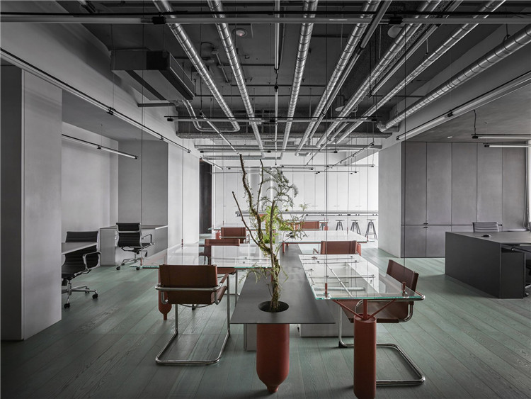 當靈感關鍵抓緊"科學"而非"辦公室",設計師希望強化產業屬性里的科學基底,扭轉一般人對辦公室的刻板藍圖.回歸產品本身最貼近的實驗室、工廠環境,日日可見的試管、生鐵黑鐵、氣體輸送管,以及包裝承載科技氣體的獨特鋼瓶,擷取生產鏈上再熟悉不過的材質與造型,拆解轉換成辦公空間的結構形體.