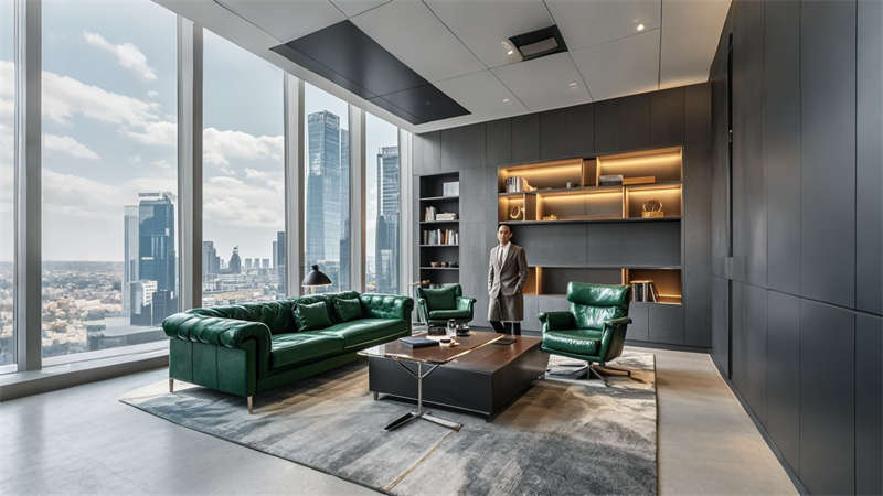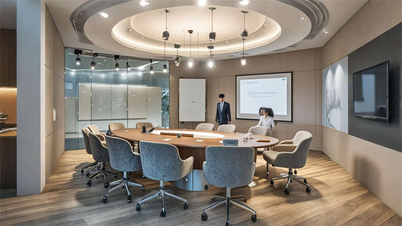 照明設計采用 3000K-4000K 色溫分區控制,重點區域設置磁吸軌道燈滿足展陳需求。聲學處理方面,關鍵會議室采用雙層中空玻璃與吸音毛氈墻面,確保 45 分貝以下靜音標準。全案貫徹 LEED 認證標準,90% 建材達到環保回收要求,實現美學價值與實用功能的有機統一。