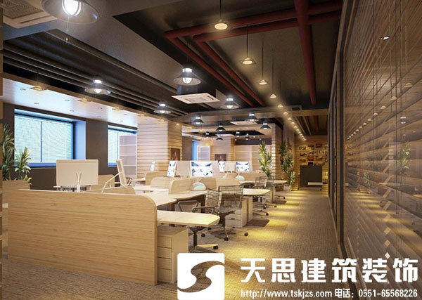 員工辦公區頂面設計方案,一般大型的員工區頂面裝修大多采用平頂裝修,吊頂材料也多是鋁扣板,或是是礦棉板吊平頂。礦棉板吊頂安裝的燈多是圓筒燈或者是節能燈具。鋁扣板吊頂比較單調多用吊頂燈裝飾。