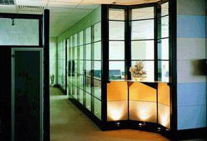 彩色玻璃隔斷是以彩藝玻璃作一種隔斷主體,主要是利用玻璃色彩變幻,營造出非凡藝術效果的辦公室隔斷,選用彩色玻璃隔斷時,最重要的是色調要與辦公室的整體裝飾設計風格保持一致。