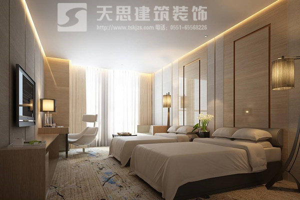 酒店裝飾主要指確定墻面、地面、頂棚的裝飾。墻面裝飾的作用是保護墻體,滿足室內使用功能的要求,同時提供美觀、整潔的生活環境。室內墻面空間大,與人接觸距離近,因而所用的材料要環保不能有污染,質感應柔和細膩。室內裝飾最好有一定透氣性。