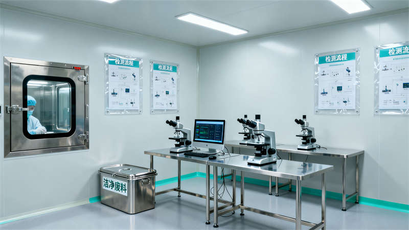 整體設計從材質選擇到光影運用均圍繞“潔凈”展開,墻面、地面、頂面的銜接細節處理到位,既符合無塵環境的專業要求,又為后續使用提供便捷與安全保障。