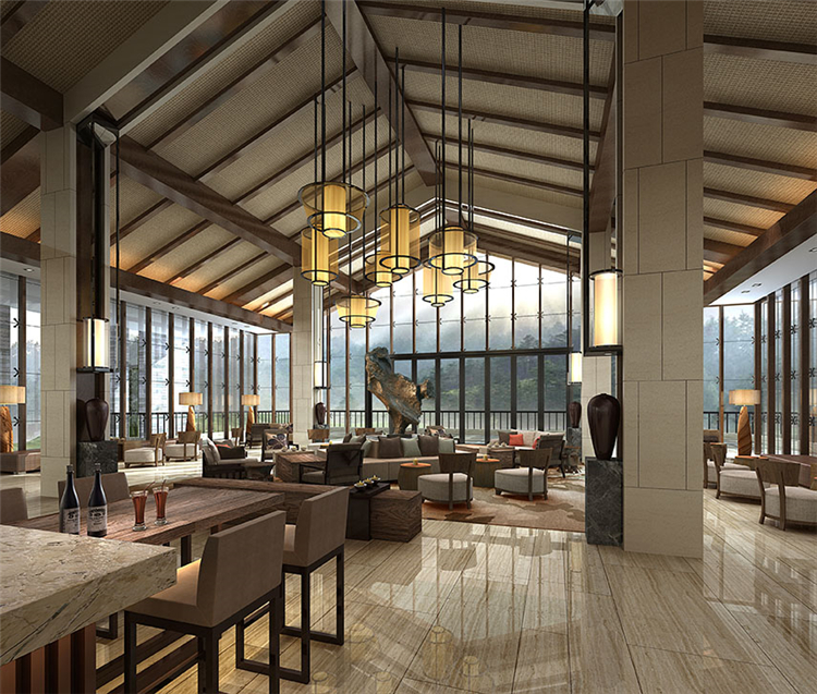 3、在酒店設(shè)計(jì)中尊重自然,愛護(hù)自然,自然的景觀以最大視角展現(xiàn)在室內(nèi),自然的元素,以藝術(shù)與提煉的方式巧妙借用到室內(nèi),因?yàn)樽匀皇亲蠲赖模彩亲钪匾?