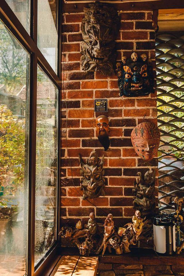 民宿門口很小,佇立著兩個石像,進去之后發現里面別有洞天,里面的面積很大,大有曲徑通幽處之意。