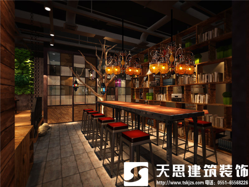 入門(mén)處,觸手可及,參差不一的木質(zhì)裝飾成就了獨(dú)特的流動(dòng)感,莞爾一笑就可見(jiàn)擺放一隅的書(shū)架。
