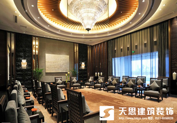 本案介紹的是位于蚌埠市的一家中式風格酒店,當我們走進酒店之后,就可以看到我們設計師精妙的設計手法,和傳統濃郁的古典文化氣氛互相融入,重在渲染高貴優雅的藝術特色,以及舒適,休閑的生活方式。并且酒店內大量的中式元素使用,以及多方面的配飾手法,讓本套酒店中式裝修更顯得莊嚴奢華,且具備濃郁的現代生活氣息,讓在酒店內休閑娛樂的朋友們,深深沉浸在這詩意般的優雅氣氛中。