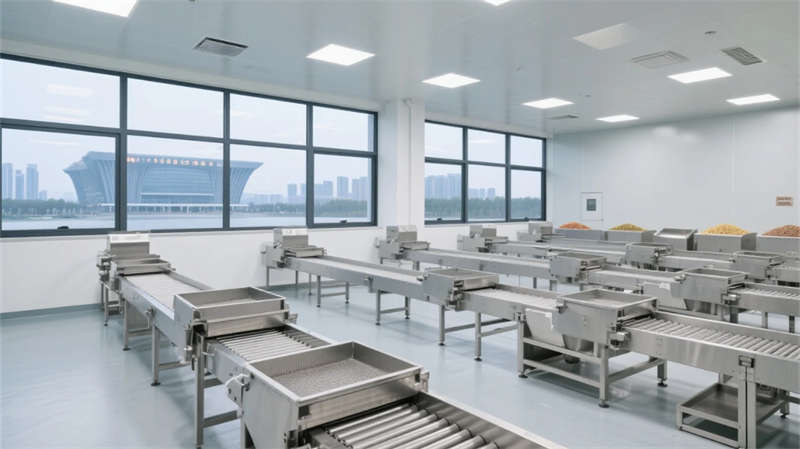 該設計將食品制造轉(zhuǎn)化為空間美學實踐,通過玻璃幕墻構(gòu)建內(nèi)外視覺對話,使合肥的城市脈動成為生產(chǎn)背景。核心車間采用全透明隔斷,不銹鋼設備與藍色光暈在環(huán)氧地坪上交織,形成精密而潔凈的科技圖景。
