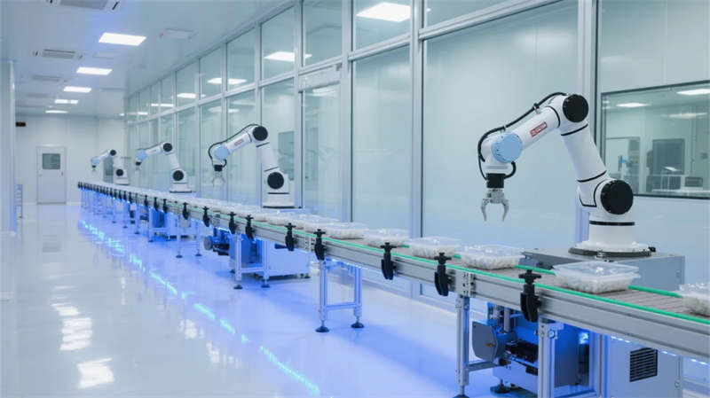 整體以灰白主調(diào)營造未來感,薄荷綠與橡木色作為生命符號穿插其中。外立面延續(xù)合肥產(chǎn)業(yè)園的現(xiàn)代語言,通過橫向長窗實現(xiàn)室內(nèi)外光環(huán)境共生,將食品制造轉(zhuǎn)化為可閱讀的空間敘事。