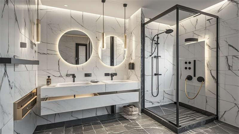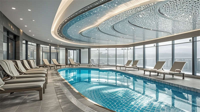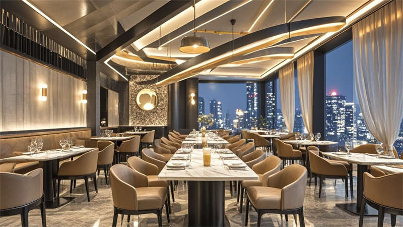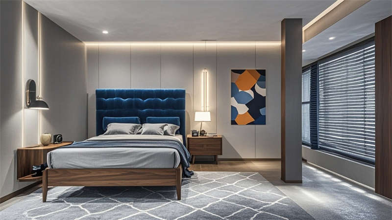 本2000平現(xiàn)代簡約風(fēng)格酒店設(shè)計(jì)以'城市綠洲'為核心理念,通過流線型空間布局構(gòu)建高效動(dòng)線。大堂采用懸浮式水晶燈與淺灰大理石地面形成視覺焦點(diǎn),金屬與木質(zhì)的冷暖對(duì)比提升空間質(zhì)感。客房區(qū)運(yùn)用深藍(lán)與淺灰的撞色搭配,配合智能照明系統(tǒng)實(shí)現(xiàn)多場景模式切換。公共區(qū)域大量運(yùn)用無框玻璃隔斷,保持空間通透性的同時(shí)實(shí)現(xiàn)功能分區(qū)。色彩體系以米白為基底,點(diǎn)綴深胡桃木與香檳金,局部運(yùn)用幾何紋樣增強(qiáng)設(shè)計(jì)感。材料選擇注重環(huán)保與耐用性,石材、金屬與吸音材質(zhì)的組合兼顧美觀與實(shí)用。燈光設(shè)計(jì)采用多層次照明系統(tǒng),筒燈、燈帶與裝飾照明相結(jié)合,營造舒適光環(huán)境。各功能區(qū)域通過統(tǒng)一的材質(zhì)語言和色彩邏輯保持整體協(xié)調(diào),同時(shí)根據(jù)不同使用需求進(jìn)行個(gè)性化設(shè)計(jì),如會(huì)議室配備移動(dòng)隔斷實(shí)現(xiàn)靈活分隔,健身中心采用防滑橡膠地板等專業(yè)處理