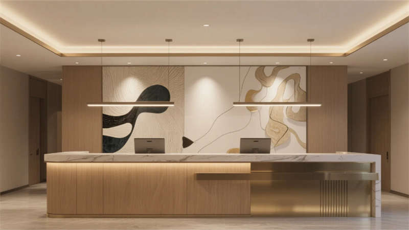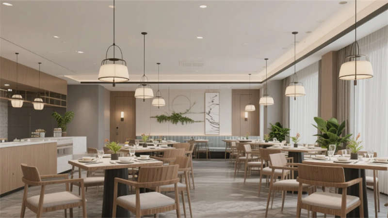 這個(gè)酒店設(shè)計(jì)以現(xiàn)代簡約風(fēng)格為核心,通過統(tǒng)一的色調(diào)和元素,創(chuàng)造出和諧而優(yōu)雅的空間體驗(yàn)。大堂作為入口,以淺木色和白色為主調(diào),配以舒適的沙發(fā)和綠植,營造出welcoming的氛圍。前臺(tái)延續(xù)簡約理念,木質(zhì)柜臺(tái)和藝術(shù)細(xì)節(jié)彰顯精致感。餐廳采用開放式布局,木質(zhì)桌椅和吊燈的點(diǎn)綴,讓用餐時(shí)刻充滿輕松與自然氣息。酒吧區(qū)則以深色吧臺(tái)和暖光照明,提供私密而時(shí)尚的社交空間。客房設(shè)計(jì)注重舒適與隱私,大窗戶引入城市景觀,簡約家具確保寧靜的休憩環(huán)境。會(huì)議室專業(yè)而高效,中性色調(diào)和隱藏照明支持專注的商務(wù)活動(dòng)。健身房融入鏡面和綠植,活力十足又不失簡約美感。水療區(qū)則強(qiáng)調(diào)寧靜,柔和燈光和自然元素促進(jìn)身心放松。整個(gè)項(xiàng)目強(qiáng)調(diào)人與環(huán)境的連接,每個(gè)功能區(qū)都服務(wù)于寧靜與精致的整體體驗(yàn),為賓客打造難忘之旅。