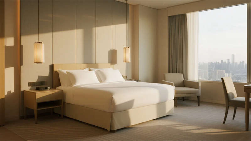 空間布局開闊通透,巨大的落地窗將自然光引入室內,與精心設計的隱藏式燈光系統共同營造出溫暖而富有層次的光影氛圍。從大堂的恢弘大氣到客房的靜謐溫馨,每一處細節都旨在為旅客提供一種沉浸式的、回歸本真的休憩體驗。整體設計強調人與空間的情感連接,在簡約中蘊含深度,于現代中流露溫潤,成就了一處城市中可呼吸、可感知的詩意棲居地。