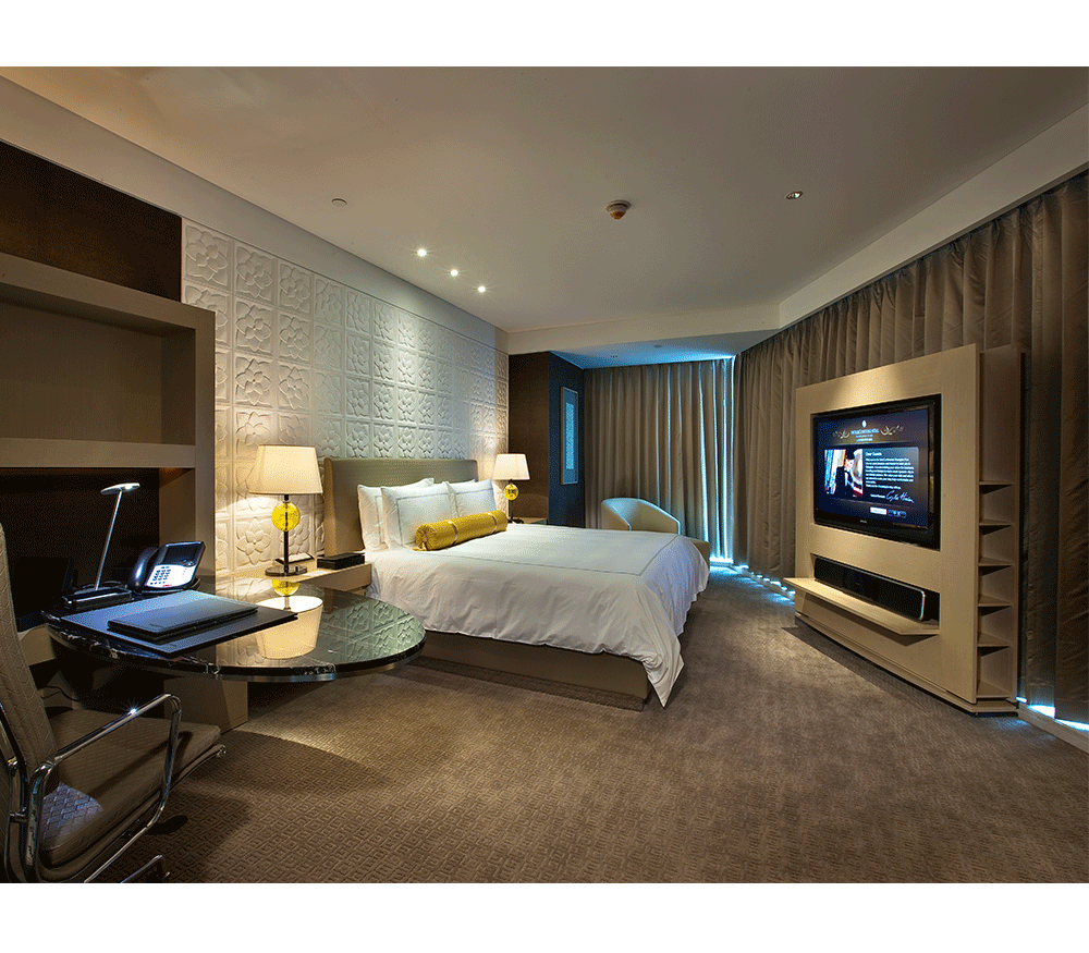 今天給大家分享是一個大型的酒店裝修設計案例,該酒店擁有 533 間豪華客房和套房,秉承酒店一貫的設計理念——簡約奢華.其中包括 25 間行政套房、 3 間復式套房、 1 間洲際套房及 2 間總統套房.此外,獨棟的行政樓內設有豪華寬敞的俱樂部酒廊,配套設施一應俱全.