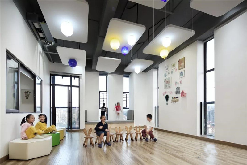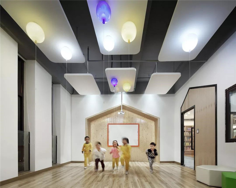 多功能室與互動教室不做具象的使用功能,留空間給孩子挖掘,以保持孩子的活躍度。發(fā)揮實體建筑落地窗的優(yōu)越性,將通風(fēng)、采光做到極致。