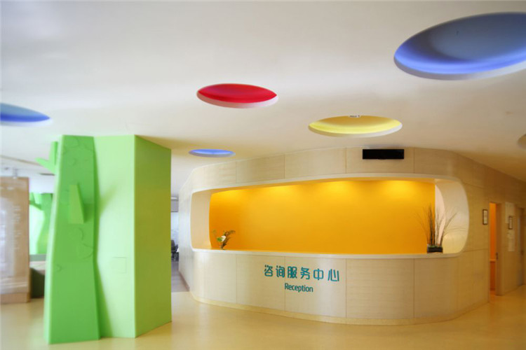 2.多層次的游樂空間,這兩點被充分的應用,在過往的醫(yī)院幾乎是未有過的.目的是利用鮮艷的色彩和流動的空間對人產(chǎn)生心理的影響,讓兒童減少因為環(huán)境的變化和疾病本身帶來的焦慮,而在此就醫(yī)過程中感到全方位的舒適與輕松.空間內(nèi)的定制家具,在以趣味性和游戲感為主題設計的同時,細節(jié)上也全部應用圓角和軟性材質(zhì)而避免對兒童造成傷害.