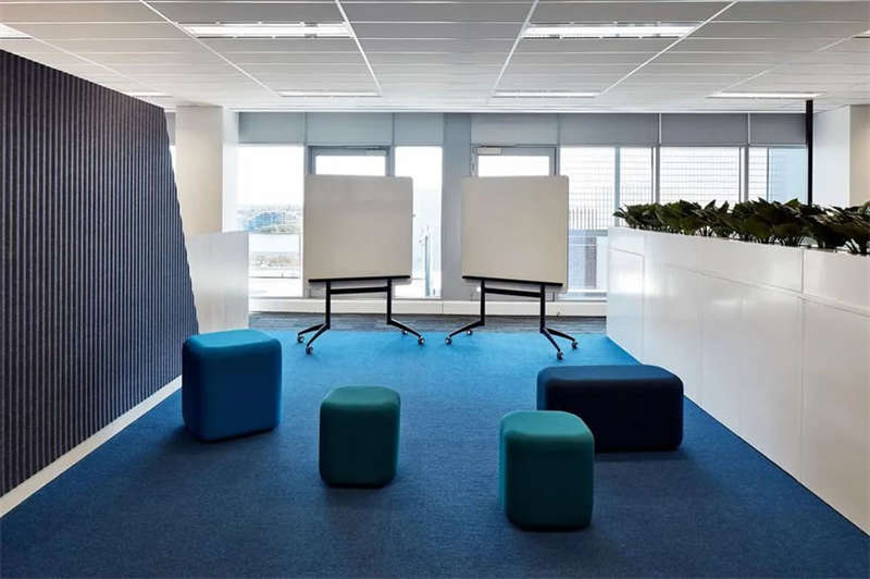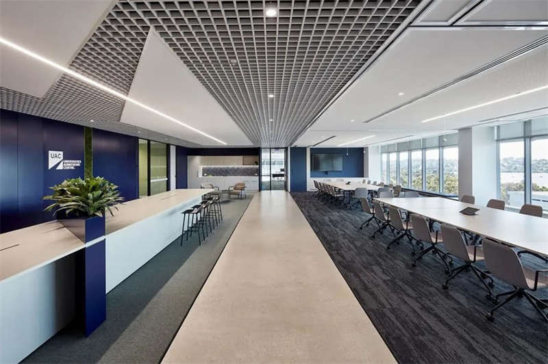 這處新空間包含了應(yīng)對新冠疫情工作場所應(yīng)具備的所有關(guān)鍵組成部分。到達(dá)這里后,一道可移動的超大墻體貫穿整個空間,打開后,這里可以舉辦大型活動或全體人員會議;關(guān)閉后,可以通過多種方式對空間進(jìn)行重新配置,使這里能夠滿足董事會議、培訓(xùn)和各種研討會的需要。