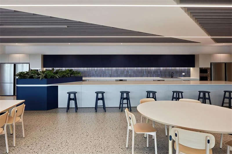大型休閑中心位于場所的核心地帶,這個區(qū)域的設(shè)計即充滿熱情又兼具實(shí)用性,規(guī)劃有社交和非正式會議的空間。
