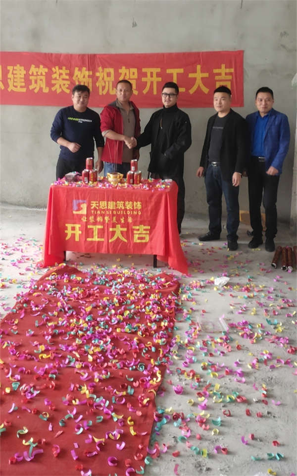 喜慶的開工桌,龍頭開工錘,鮮花美酒水果為此次開工儀式營造了一個喜慶、和諧、美滿的氛圍,預示著整個項目的平安順利,和諧美滿,也預祝火鍋店開業后能夠財源廣進.