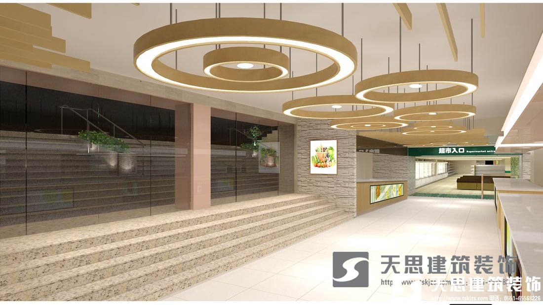 超市入口設(shè)計一定要便于顧客出入,不致造成阻塞、擁擠,又能有效地利用商店面積。出入口設(shè)計原則是超市門面裝修設(shè)計原則的首要點(重點)。