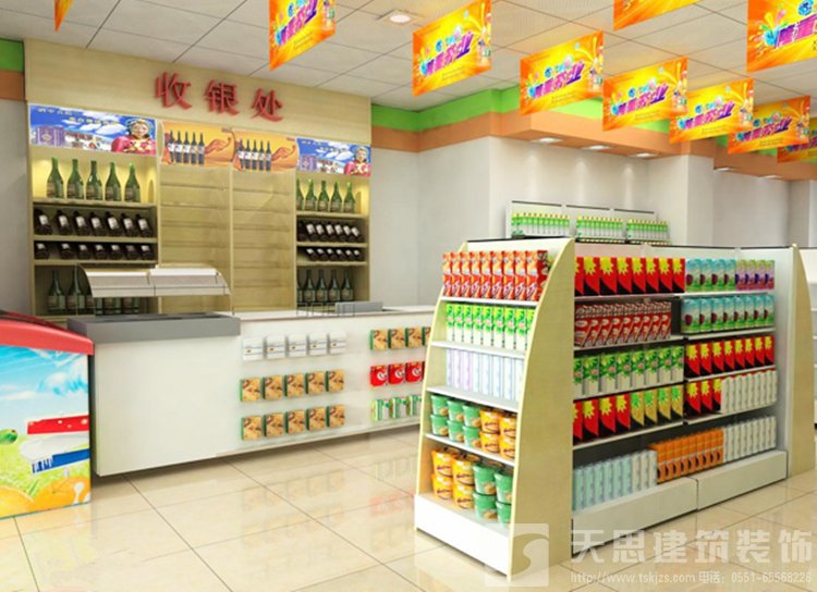便利店的裝潢效果應(yīng)該最有效地突出商品的特色。裝潢不宜采用豐富、鮮艷的色彩,不要讓裝潢的色調(diào)來分散顧客對商品的視覺注意力,最好是天、地、墻都采用反光性、襯托性強(qiáng)的純