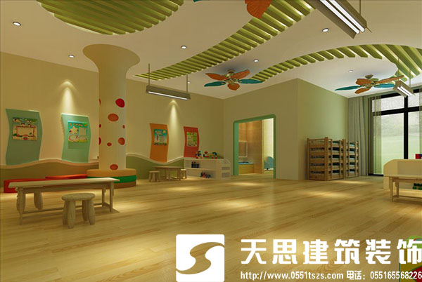 好的幼兒園裝修設(shè)計(jì)必須充分體會(huì)到孩子的需要,讓孩子們健康快樂的學(xué)習(xí)和成長(zhǎng),才是幼兒園設(shè)計(jì)成功的關(guān)鍵。要使幼兒在適合他們健康成長(zhǎng)的環(huán)境中生活。安全、衛(wèi)生是重要的條件,幼兒園環(huán)境創(chuàng)設(shè)必須服從于衛(wèi)生和安全的要求,以保證幼兒的安全成長(zhǎng)。合肥裝飾公司天思建筑裝飾公司您身邊的裝修專家,裝修詳情盡情咨詢:http://m.huadesports.cn/