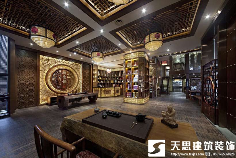 照明重在營造氣氛,要與建筑結構和室內外環(huán)境、布置相協(xié)調,勾勒出現代美好的光環(huán)境。茶藝館大廳照 明需“亮”,這與品茶要聞其香,觀其色相關。晶色,即觀茶之湯色,是品茶中一個重要環(huán)節(jié),不可忽視。而雅座包廂,可適當用能調節(jié)的燈,在情調中細晶漫啜。照明是現代之韻,而燈具則要用中國傳統(tǒng)式的造型為妙。走廊、圍欄最好用黑胡桃木,那天然的質感,使其透露出原始,以及擺放紅豆杉樹樁做成的品茗桌、凳,會有使人還樸歸真之感。掛名人字畫,要有選擇以適合茶藝館如“梅、蘭、竹、菊”四君子配以茶詩,或以名茶為主題的書畫及詠茶詩詞,用對聯(lián)、扇面形式也很好,特別是茶館楹聯(lián),會添增其品飲之情趣。至于木雕、石刻可采用明清古董,也可根據所需雕刻。陶瓷是中國的象征,又是與茶有直接相關之器皿,景德鎮(zhèn)精制瓷瓶與宜興紫砂壺放在博古架上會使茶藝館古樸雅致,中國味特濃。在寧靜的氛圍中,絲竹聲聲和茶藝表演,四季時花擺放,使茶藝館飄著淡淡的幽香,造成了獨特的品茗環(huán)境,在這樣的茶藝館中能尋找古典的人文韻味,又享受現代文明生活的樂趣。