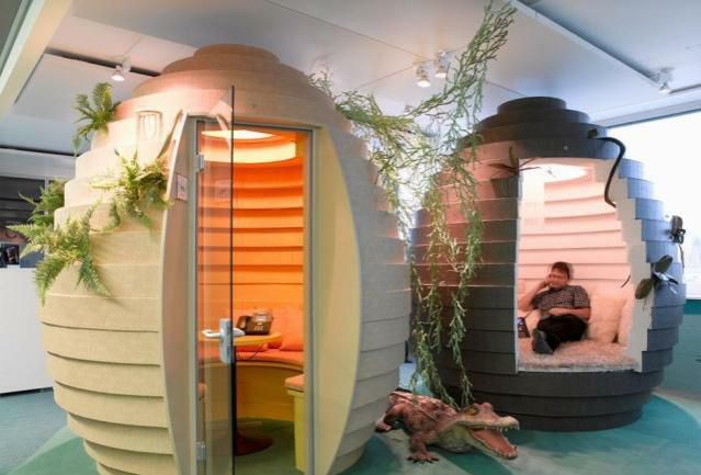 說起最吸引人跳槽的辦公室設計,大家可能第一時間想到的就是谷歌公司的創意辦公室.辦公區域的每一處設計都別出心裁,融入了地方色彩,別具風情.在這樣舒適愉悅的環境下辦公,谷歌總是能夠帶來許多令人眼前一亮的產品也有因可循了.谷歌辦公室以快樂健康,高效工作為目標.可以帶狗狗進入辦公室(貓星人暫時不行)的人性化規定,打造與大自然融合的熱帶雨林辦公區域,提供挑選自己喜歡的廚師做飯的個性化餐廳服務.谷歌的確稱得上"要創造世界上最令人感到幸福、最能激發生產力的工作場所."的辦公室.