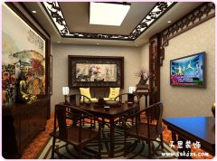 設計思路:以仿清代室內布置為主.用清式家具和窗花、字畫、木欄干等管造古色古香的氛圍。廚衛和孩子房則以現代裝飾手法為主。古為今用、古今結合,創造居空新風貌。 主要做法