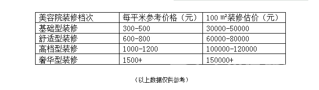 以上是我們根據(jù)當(dāng)前的市場行情,所制定的一份參考裝修價格表,當(dāng)然在實際當(dāng)中,根據(jù)地理位置以及材料選擇,還有裝修風(fēng)格等各種因素,都會對美容院的裝修價格起到影響,所以美容院裝修要花多少錢還得以實際情況為準(zhǔn)。