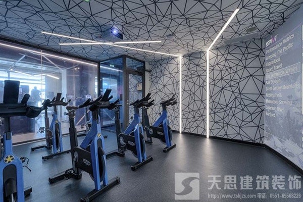動感單車房的裝修和健身操房大同小異,但也要注意與整個健身房的融合統一。動感單車是一個特殊項目,具有極強的煽動性,可以即刻提升會員或參觀者的健身欲望,因此一般安排在整個健身房比較醒目的空間位置。
