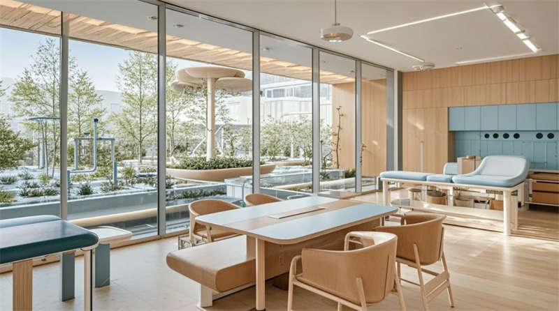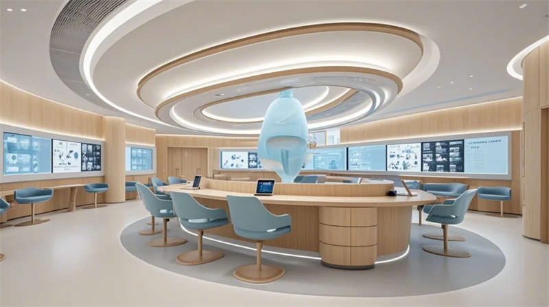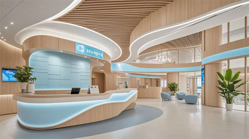 空間設計深度融入院感防控要求,全區域采用環氧樹脂自流平地膠與抗倍特抗菌板材,醫技區雙通道設計實現潔污分流。智能系統貫穿全場景:手術等候區的動態光環境調節、康復花園的感應式照明、急診通道的電子玻璃隔斷,彰顯科技醫療時代特征。設計團隊特別注重心理療愈,270度觀景等候區、水景冥想花園、減壓藝術裝置等創新節點,重構了傳統醫療空間體驗,塑造兼具專業信賴感與情感溫度的新型現代醫院范本。