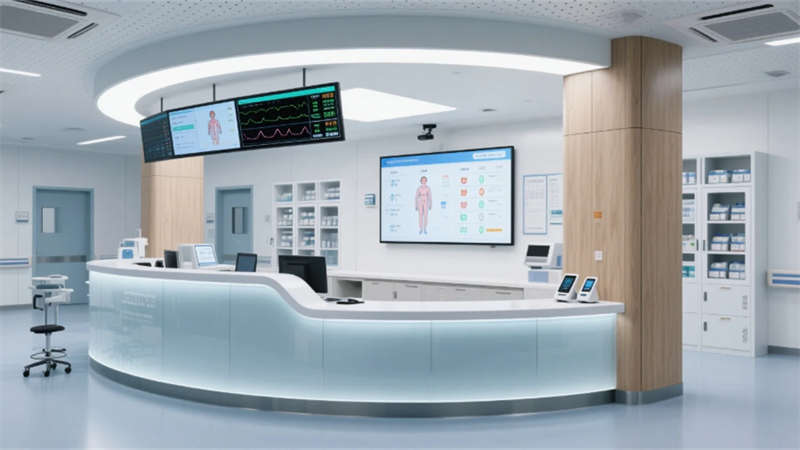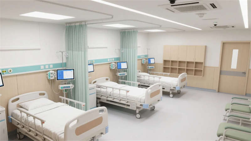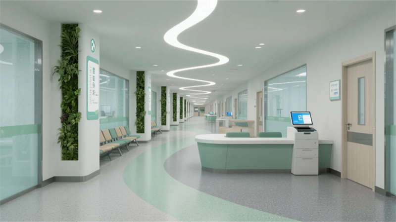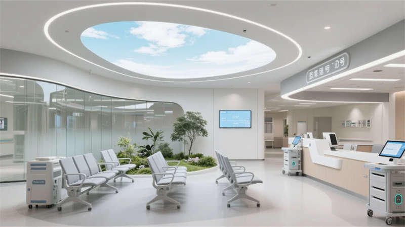 智慧系統隱形滲透每個角落:候診區的生態墻內嵌電子叫號屏,醫療街導航立柱實時更新就診信息,病房床頭屏集成環境控制與醫療呼叫功能。特別設計的抗菌材質與無縫工藝,在營造溫暖氛圍的同時嚴守院感防線。