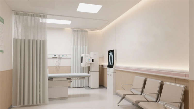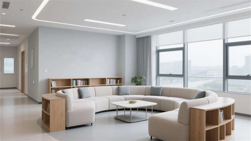 該社區(qū)醫(yī)院設(shè)計(jì)以現(xiàn)代簡(jiǎn)約理念為核心,營(yíng)造出溫馨而高效的醫(yī)療環(huán)境。整體空間強(qiáng)調(diào)人性化布局,接待大廳寬敞明亮,弧形接待臺(tái)與自然光結(jié)合,營(yíng)造親切的第一印象。候診區(qū)舒適寧?kù)o,沙發(fā)與書架的點(diǎn)綴減輕等待焦慮,診室則注重隱私與專業(yè)感,柔和色調(diào)提升患者信任。藥房設(shè)計(jì)簡(jiǎn)潔清晰,便于快速取藥,急診室布局高效,確保緊急響應(yīng)流暢。化驗(yàn)室和影像科突出功能性,無菌環(huán)境與設(shè)備集成保障精準(zhǔn)診療,康復(fù)區(qū)開放通透,綠植與自然光促進(jìn)身心恢復(fù)。所有區(qū)域統(tǒng)一運(yùn)用中性色調(diào)、木質(zhì)元素和流線型家具,強(qiáng)化視覺連貫性,同時(shí)融入充足采光與綠意,打造舒緩氛圍。設(shè)計(jì)不僅提升醫(yī)療體驗(yàn),還呼應(yīng)了合肥的城市人文特色,為居民提供一處安心、便捷的健康港灣。