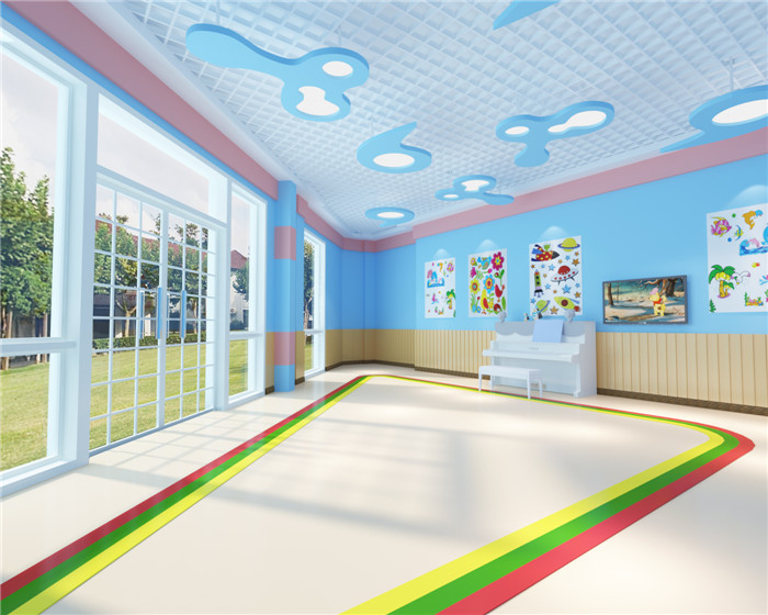 4、頂面材料要求: 幼兒園頂面高度要把控好,假如太低會給幼兒壓抑感和不適感。在材料方面,確保材料質量、環保尺度過得去就行,特別要留意吊頂材料質量可靠、安裝可靠,以免吊頂安裝不當存在安全隱患。