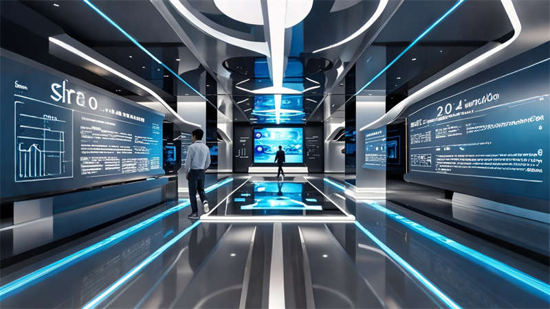 本 3000㎡辦公樓展廳采用 ' 科技人文 ' 設計理念,以灰白色為基調,企業藍為點綴色,打造現代簡約風格。空間規劃采用 ' 展辦融合 ' 模式,前廳設置 10 米通高數字藝術墻,產品區配置智能感應展臺。辦公區采用模塊化家具系統,搭配聲學處理隔斷。動線設計運用環形參觀路線,通過藍色導視光帶串聯各功能區。材質選用啞光金屬、木飾面與玻璃的混搭,科技感與溫潤感并重。照明系統采用 4000K 色溫 LED 線性燈,重點區域搭配軌道射燈。智能中控系統集成環境調節、安防監控和數字展示功能,實現空間高效運營。綠植墻和透光軟膜天花的設計,有效改善室內微氣候。