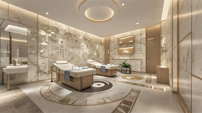 本2000平中醫(yī)院設(shè)計(jì)融合傳統(tǒng)中醫(yī)文化與現(xiàn)代醫(yī)療功能,采用 ' 療愈之境 ' 核心理念。空間規(guī)劃采用 ' 回' 字形動(dòng)線,門診、診療、康復(fù)三大功能模塊環(huán)繞中央庭院布局。色彩體系以米白、淺灰為基底,點(diǎn)綴赭石、黛青等傳統(tǒng)中藥色彩,墻面肌理漆模擬紙張質(zhì)感呼應(yīng)古籍文獻(xiàn)。診療區(qū)域采用模塊化隔斷系統(tǒng),兼顧隱私與通風(fēng)需求。智能照明系統(tǒng)可模擬晝夜節(jié)律變化,候診區(qū)座椅集成無線充電功能。重點(diǎn)區(qū)域設(shè)置 AR 中醫(yī)文化互動(dòng)裝置,住院部走廊每 10 米設(shè)置中藥香薰擴(kuò)散點(diǎn)。材料選擇注重環(huán)保性與耐久性,地面采用防菌 PVC 卷材,墻面使用易清潔的納米涂層。整體設(shè)計(jì)通過現(xiàn)代設(shè)計(jì)語言詮釋中醫(yī) ' 天人合一 ' 理念,打造兼具專業(yè)醫(yī)療功能與人文關(guān)懷的現(xiàn)代化中醫(yī)院空間。
